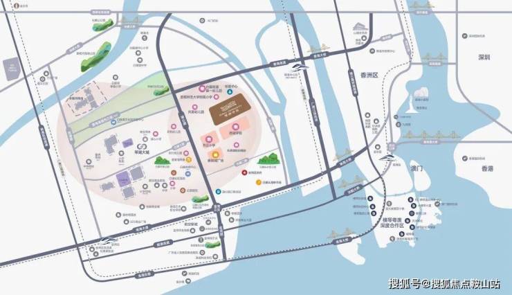 项目位于“西部中心城”先发区,东临鹤洲高铁枢纽,北接东湖新城核心区,扼守珠海西进“桥头堡”,由湖心路出发,可通过香海大桥等四座大桥快速抵达各城市核心区。
