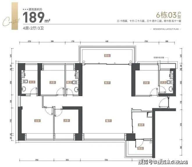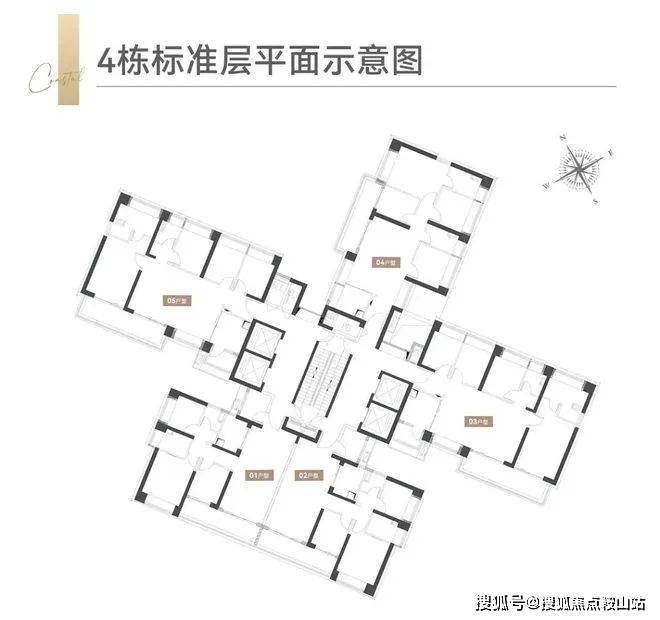 4栋、5栋:4梯5户,层高3.1米,01-02户型116平3房2卫,03、05户型142平4房2卫,04户型120平3房2卫;