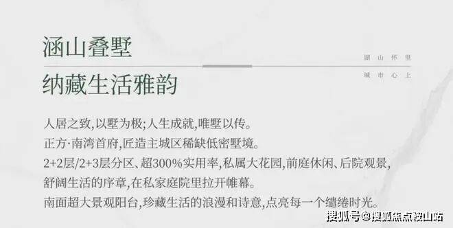 :项目包括大平层、高层住宅和稀缺的叠墅产品,由知名设计师团队设计,强调建筑与外部环境的融合协调。