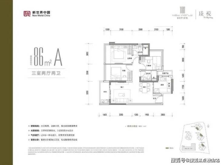 86㎡ 3房2卫 >>