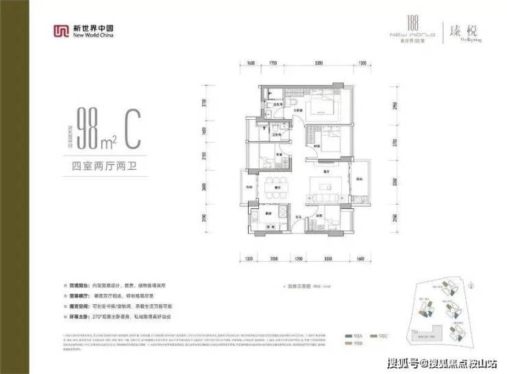 98㎡ 4房2卫>>