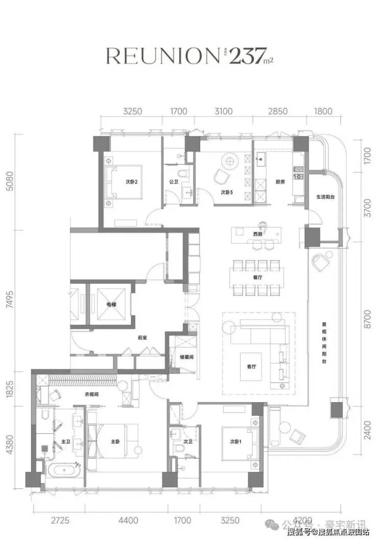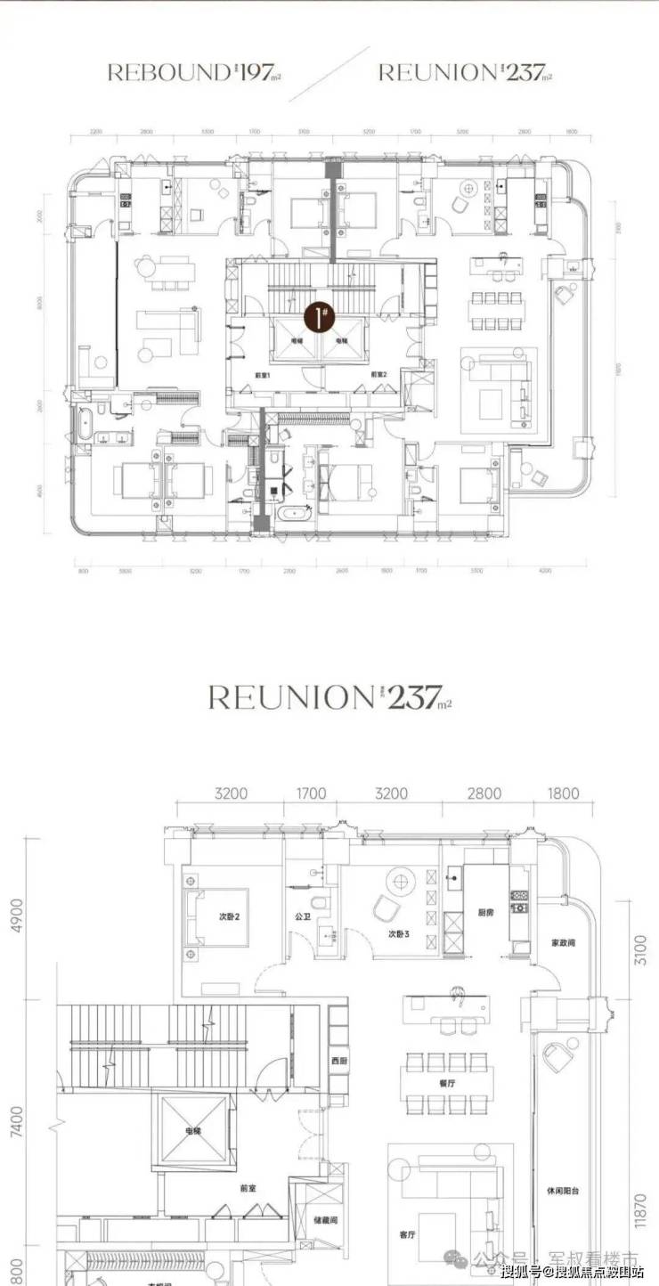 3. 主力户型:197-237㎡纯大平层,圈层纯粹