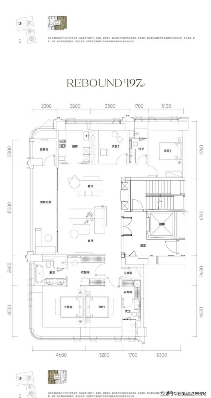 •尺度革新:建面约197m²户型,专梯入户设计。户型格局极致方正,动静分区清晰,实现了三面采光与双南向套房的“双龙抱珠”格局。
