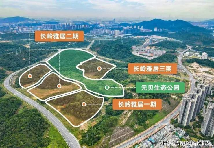 项目规划 5 大地块,环抱元贝生态公园而建,内园外山,帽峰山、萝峰山风景尽收眼底,东南向林地未来或将规划国家荔枝公园。