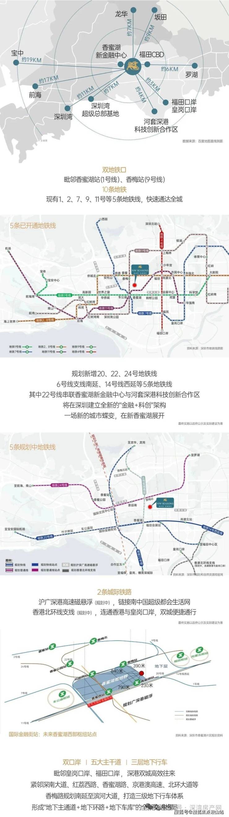 地铁1号线香蜜1站车公庙,2站福田中心,3站后海深圳湾,项目1.5公里内分布有深南大道、香蜜湖路、新洲路等城市主干道,自驾出行非常方便。