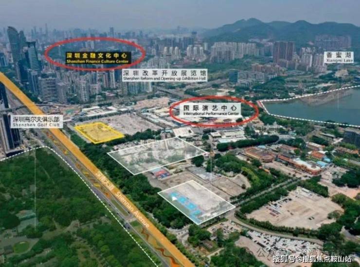 香蜜湖中区规划建设4栋摩天大楼,1栋高度不超500米、2栋不超370米、1栋不超300米的超高层建筑。