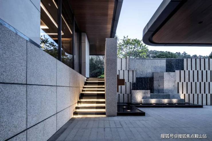 建筑依山就势将地面抬高,超高挑高设计带来开阔的体验感。
