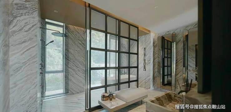 在空间布局上,设计师为其嵌入流畅的动线,以天然大理石做隔断,让空间的层次美感得以进一步展现。
