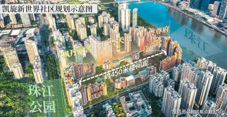 整个凯旋新世界共分三期开发,项目划分为北区、中区和南区,北区一期的枫丹丽舍建成于2005年,北向紧挨着珠江公园;中区则是二期的广粤公馆、高端商业广粤天地、顶级会所广粤会等;南区三期的广粤尊府建成于2012年,南向一线望江俯瞰广州城市地标。