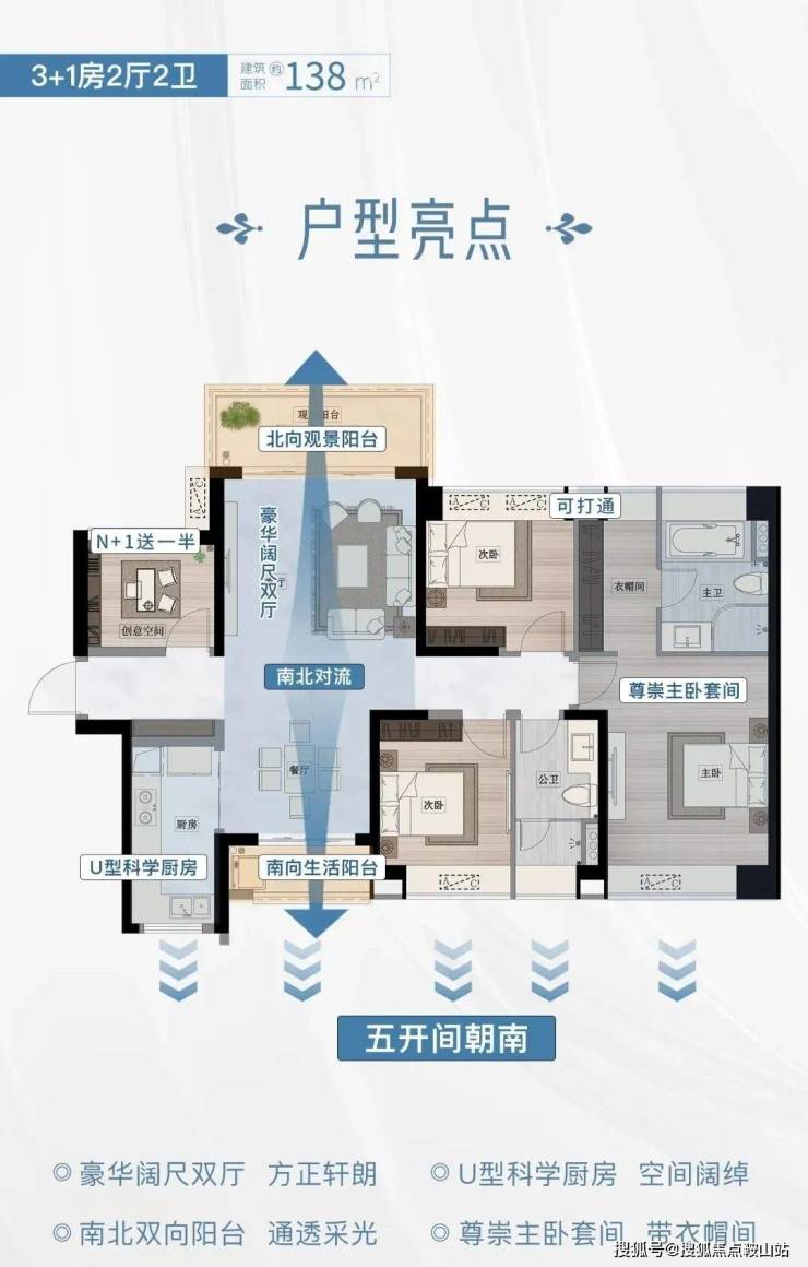 建面138平四房,做到五开间朝南,南北对流双阳台,3+1设计,两个次卧都有独立空间,做到了互不打扰。
