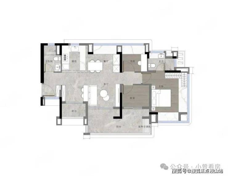 主力户型如 79㎡三房两厅两卫采用动静分区设计,