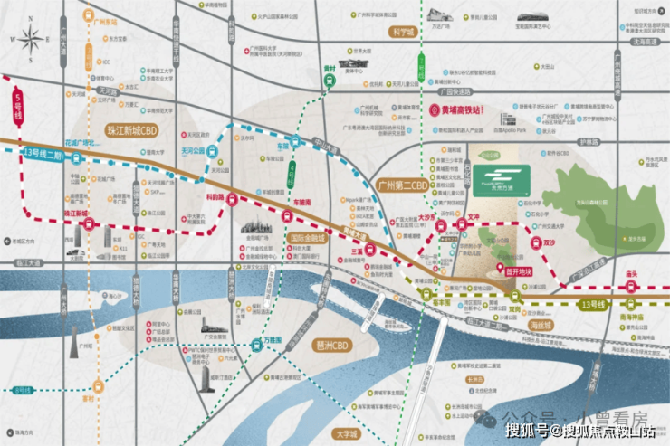 交通配套方面,项目实现 “双地铁上盖”,距 5 号线文冲站与 13 号线双岗站均在步行可达范围内,通过 5 号线 3 站直达金融城、6 站抵达琶洲,9 站直通珠江新城;13 号线则可快速串联鱼珠、新塘等区域。此外,“三横一纵” 路网(黄埔大道、临江大道等)与广深沿江高速构成立体交通网,规划中的黄埔高铁站(10 条高铁线路)建成后,将形成 30 分钟湾区通勤圈。