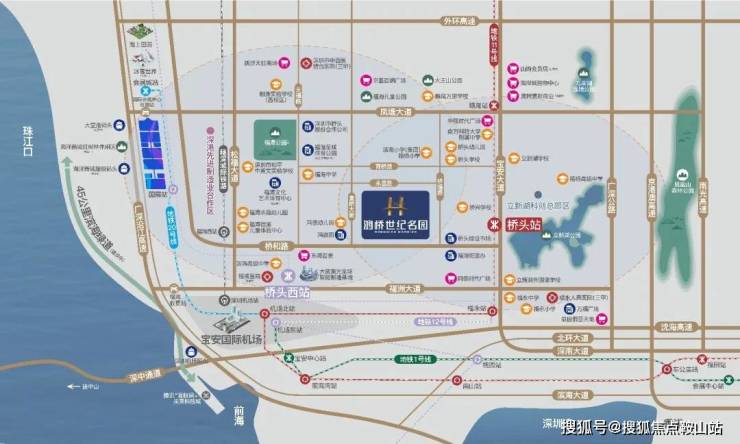 城际交通:临近的福海西站以及深圳机场东站,可直接搭乘深大城际(在建中)、穗深城际铁路前往广州等地,深圳机场东站将成为湾区内联外通的一个交通集散地。