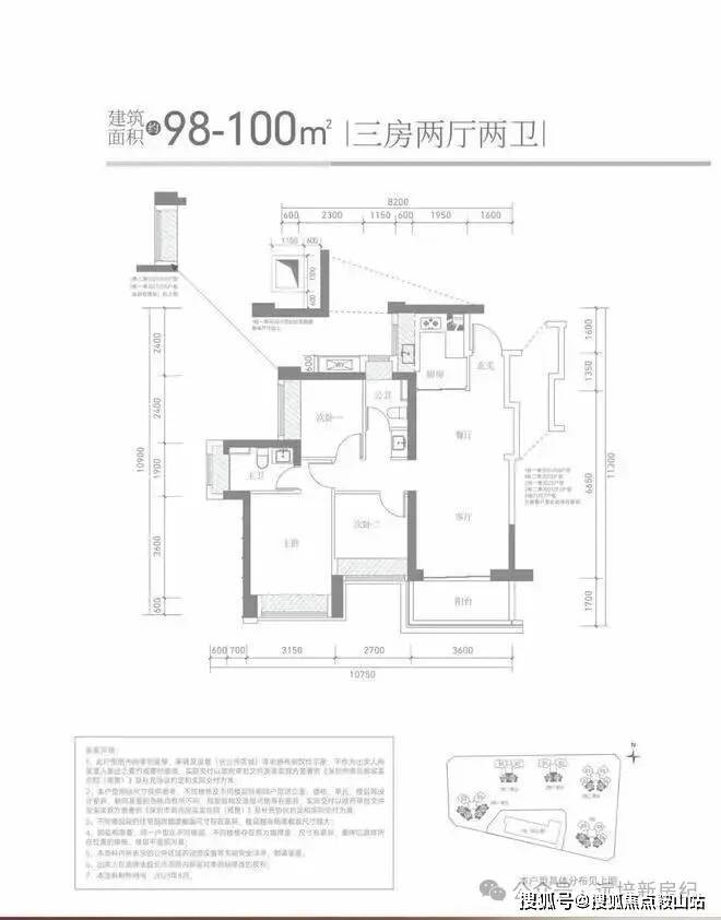 98㎡-100㎡的3房2厅2卫:传统竖厅的3房2卫户型,竖厅动静分区格局,客厅进深8米(不含阳台),开间3.6米,主卧11.3㎡(不含主卫和飘窗);可以说是88平米户型的加强版,多了一个卫生间,其他各个功能间面积有所增加;两个次卧的飘窗同样可以打掉,优化后两次卧的面积居住比较舒适;对比光明其他产品的3房2卫,可以说是舒适型户型,而且是项目的主打户型。