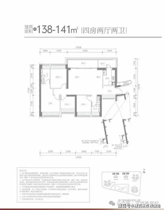 138㎡-141㎡的4房2厅2卫:4房2厅2卫,横厅设计南北通透,可以说是120平米房的加强版本,户型格局差别不大,最大的改变就是阳台,该户型的阳台连接厨房长8.8米;其他方面就是各个功能间的面积增加。