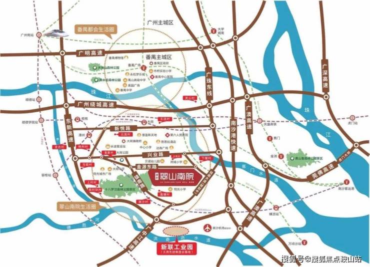 半小时番禺生活圈 项目位于番禺南边,以大岗为核心,距离市 桥南仅半个钟车程,往北途径广珠东线能通往番禺,往西途径顺番路 能通往佛山顺德,往东途径省道S111能通往南沙 金洲,商圈:荔园新天地、番禺奥园广场、番禺永旺梦 乐城、基盛万科里、番禺万达广场 医疗:番禺中心医院、广东省中医院大学城分院、 广东祈福医院