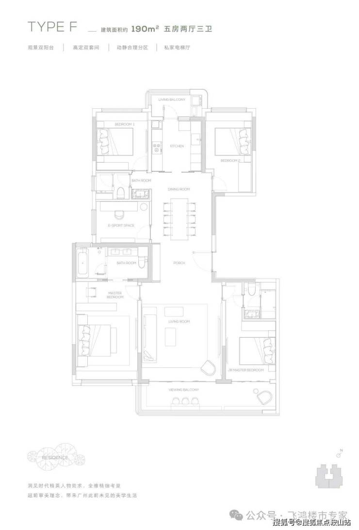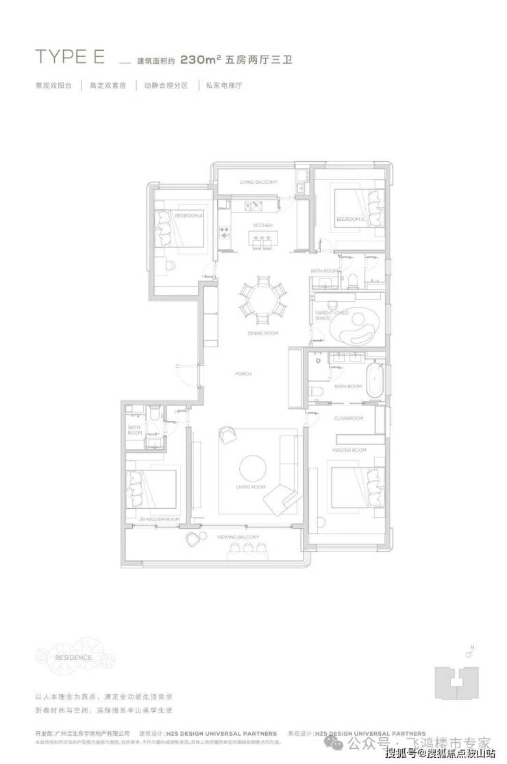 缦云广州主打改善型住宅,户型面积范围在 140㎡至 325㎡之间。目前加推的建面约 190/230㎡“超级四叶草” 户型备受关注。它摒弃常规方厅设计,采用纵向超长中轴为庭,串联起厨房、餐厅、客厅和南北双阳台。