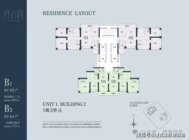有2个户型,分别是西北,东南朝向;都是是双龙抱珠格局,其中A2(03/06)户型客厅超大观景阳台(近7米);