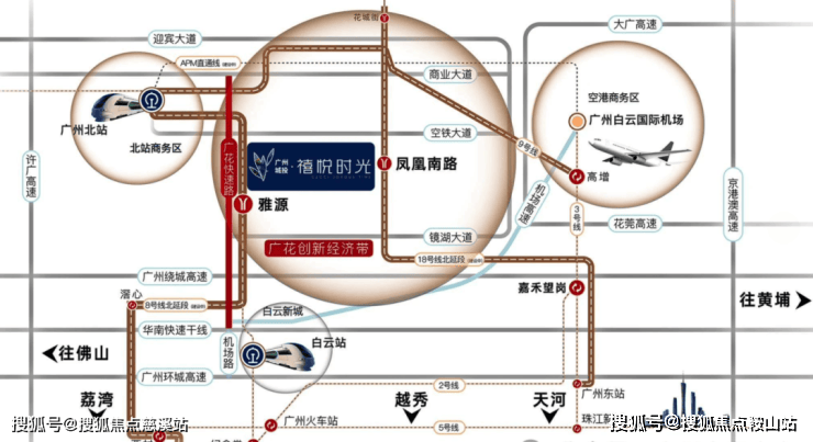 在建的 8 号线北延线将贯穿广花新城板块,并设有雅源站和东镜站。