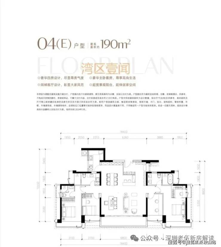 建面约190㎡宽幕湾居美宅,奢阔横厅设计,超广角阳台,纷呈世界万千精彩,轻奢主义双主卧套间,领衔湾居生活方式。