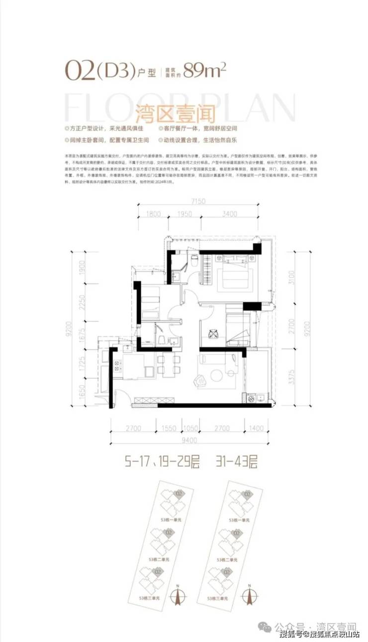 此次推售产品为53栋3单元 3梯5户/3梯4户 89/190㎡