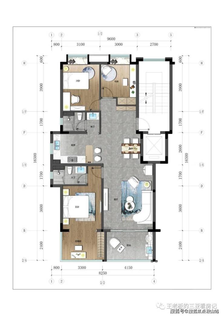 3.下叠:建筑面积约100-110㎡,四房三厅三卫。