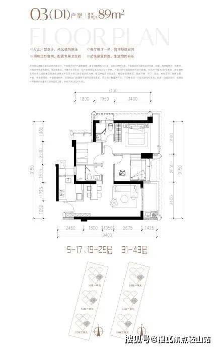 约89㎡3房2厅2卫,户型方正呈竖厅布置,结构上✨深铁前海时代 ✨✽✽✽✽
