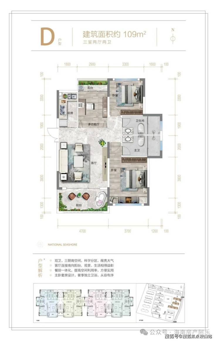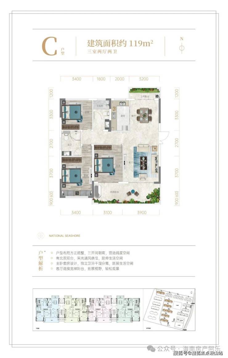 作为海棠湾 “温泉入户+纯板洋房”的标杆之作,其核心壁垒在于“约109-119㎡”带来的全系生活体验与“东方宇亿集团”的品质背书,项目不仅通过低密度规划实现了高绿化与宽楼距的舒适环境,更坐拥海棠湾的顶级配套;在产品营造上,项目采用新中式风格立面,主力户型主打竖厅布局,强调LDKB一体化、高得房率及大阳台设计(配置格力中央空调、博世厨电等),满足刚需及改善家庭的舒适需求;在生活配套上,项目自带温泉泡池及星光泳池,步行可达免税城及人大附中学校,交通直达三亚机场,生态上近享赤田水库景观,真正实现了“大城、品质、配套成熟度”三维一体的刚需/改善生活闭环。