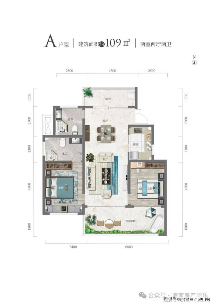 A 户型109㎡两室两厅两卫