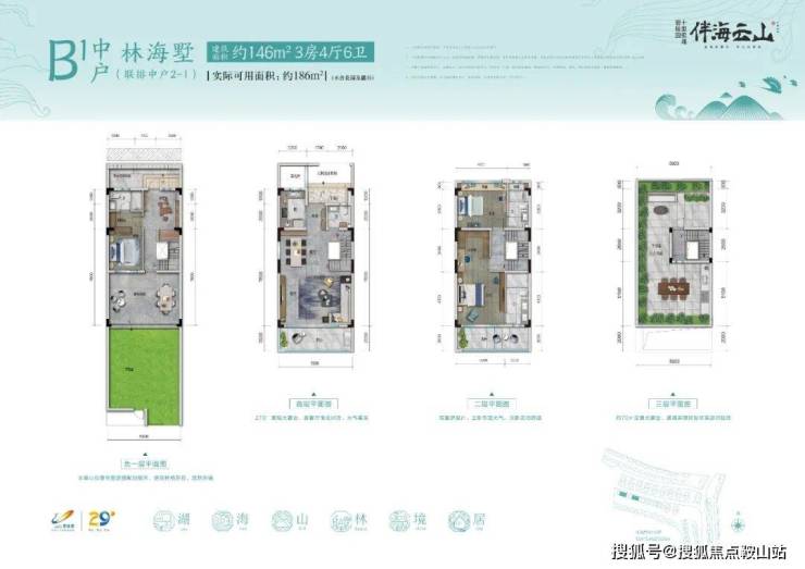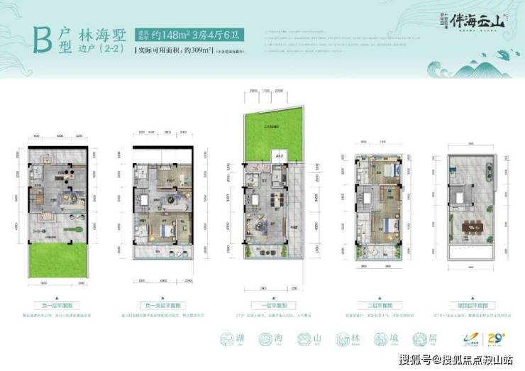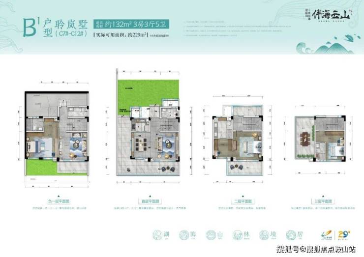 (伴海云山一期合院)精装交付凌云墅C下户207样板房:建筑面积约148㎡,实际可用面积约240㎡(不计花园及露台)
