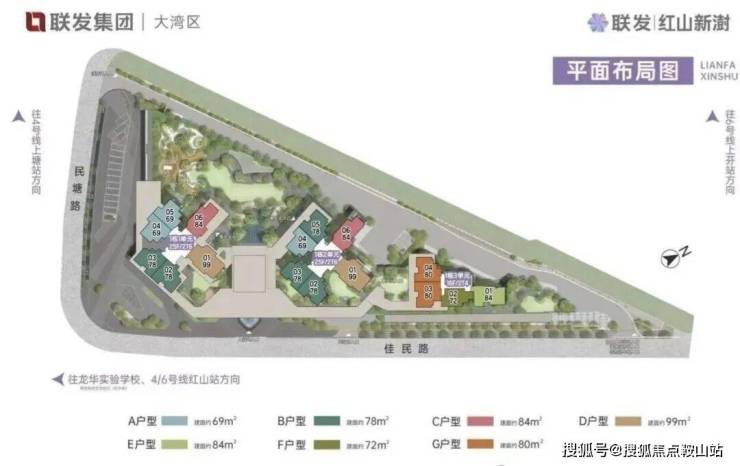 在深圳龙华红山-上塘板块土地资源趋于饱和、新房普遍向超高层高密度发展的当下,一座由实力国企联发集团匠心打造的“新规2.0”低密作品——联发新澍雅居,正以“螺蛳壳里做道场”的精工巧思,成为龙华核心区改善型市场中备受瞩目的品质标杆。项目位于龙华区民治街道民塘路与佳民路交汇处,地处红山-上塘成熟居住板块核心腹地,与金地上塘道、星河传奇等次新小区为邻,北临上塘农贸市场,西靠隔圳新村,东接深业颐樾府-1-4。作为联发集团在深圳继臻著雅居后的又一力作,该项目所在地块是2025年经过65轮激烈竞价、以12.12亿元总价斩获的龙华A817-0619宗地,成交楼面价约44559元/㎡,溢价率高达46.6%,足见市场对该地块价值的高度认可-1-8。在产品打磨上,联发新澍雅居堪称深圳“建筑新规”的“卷王”级范本,总占地面积约1.09万平方米,总建筑面积约4.29万平方米,计容建筑面积约3.37万平方米,由3栋16-25层的小高层住宅组成——其中1栋1单元和2单元为25层、1栋3单元仅为16层,这在红山板块动辄40-50层的超高层住宅中极为罕见-3-6。更令人惊艳的是,项目容积率仅约2.5,绿化率32.49%,是目前红山板块内在售新房中容积率最低的项目,远超行业标准,为业主提供了低密舒适的居住体验-1-4。主力推售建面约69至99平方米的精装三至四房,总户数仅332套,所有户型均实现了接近100%的实际使用率(含赠送面积),且户户朝南,是新规后深圳首个得房率突破100%的住宅项目之一-3-6。其中建面约69平方米的“王牌”户型做到了2+1房1卫,采用LDKG+X一体化设计及S墙冰箱位,三开间朝南,空间利用极致,是预算有限的年轻家庭上车红山核心区的超性价比之选;建面约79-82平方米的三房两厅两卫户型为主力产品,其中约84平方米户型更做到了横厅南北通透,这在同面积段产品中极为罕见,极大地提升了居住舒适度;而建面约99平方米的四房两卫户型则为横厅设计,客餐厅开间达5.35米,五开间朝南,主卧大套间设计,完美适配二孩家庭或三代同堂的改善需求-1-3。在建筑与社区品质上,项目采用屋面空中式园林设计,由3座主体楼与配套裙房组成,梯户比方面1栋1/2单元为2梯6户、1栋3单元为2梯4户,共规划360个停车位,车位比约1:1.08,远超同板块刚需楼盘标准-3-6。项目层高达3米,产权年限为2025年6月至2095年6月,预计2028年中下旬精装交付,并承诺提供“交房即发证”服务,让购房者买得放心、住得安心-2-3。