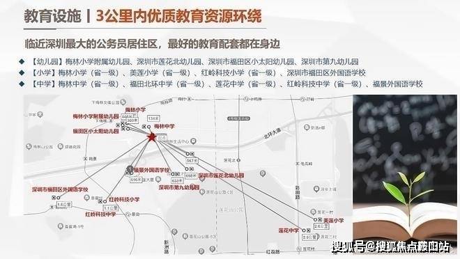 教育方面:幼儿园梅林小学附属幼儿园、深圳市莲花北幼儿园、深圳市福田区小太阳幼儿园、深圳市第九幼儿园