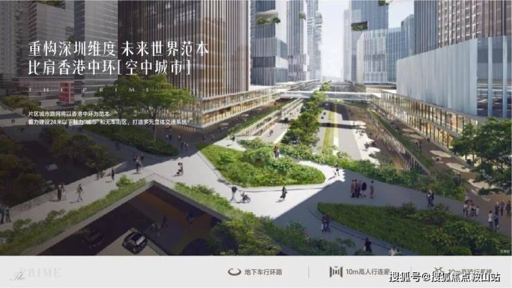 >>>立体出行路网 超级交通枢纽项目片区的城市路网将以香港中环为范本,着力建设24米以下魅力“城市” ,并利用10m高人行连廊和10m高骑行系统等打造无车街区,建成未来城市的多元立体交通系统范本。