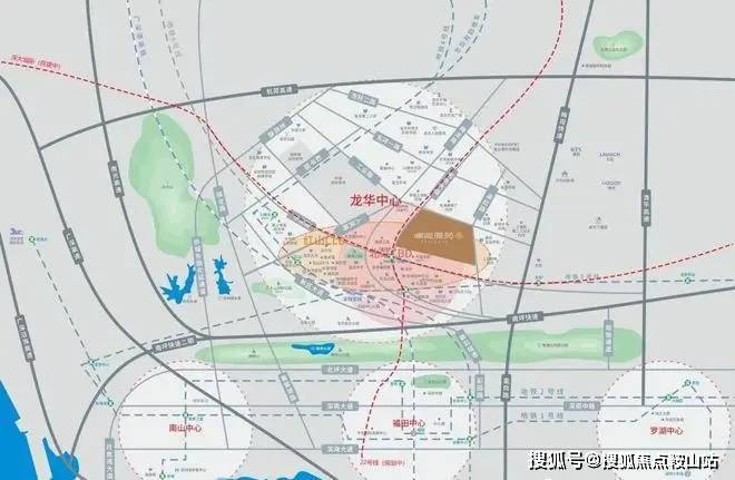 片区贯穿了南坪快速、布龙路、龙华大道、人民路、梅观高速等五纵五横城市主干道,15分钟抵福田,20分钟抵达罗湖、南山及深圳各大核心商圈。500米范围内有33号线深大城际(建设中)、22号线(地铁五期规划中)民治北站;临近5号线五和站、民治站。