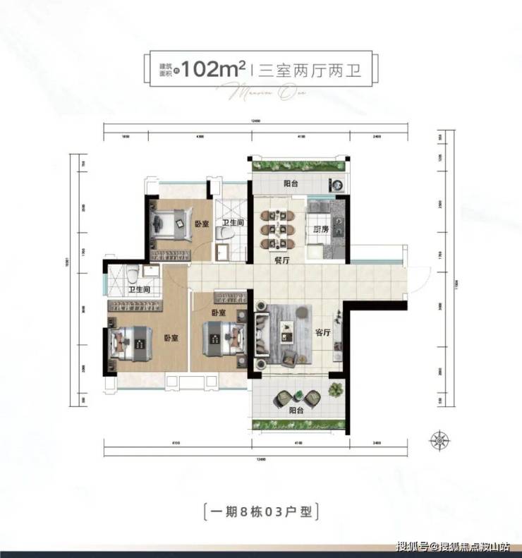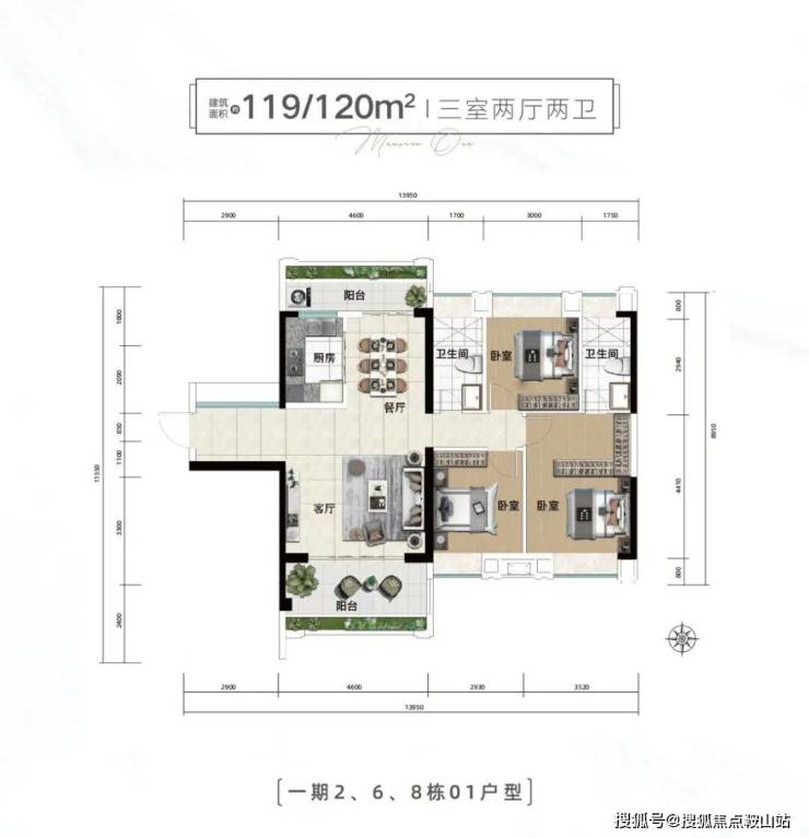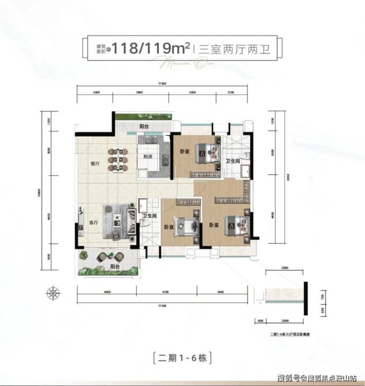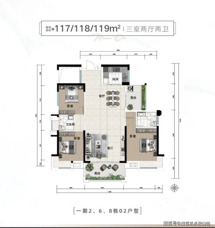 【产品户型】一期:102-119㎡三房,143㎡四房;二期118-119㎡三房