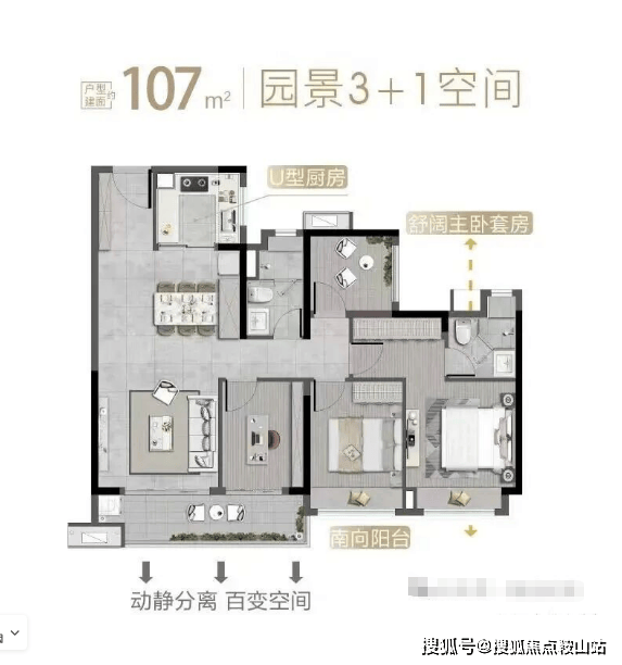 ✧“卷王”户型 同等面积多一房 ✧全南朝向,使用率超96%