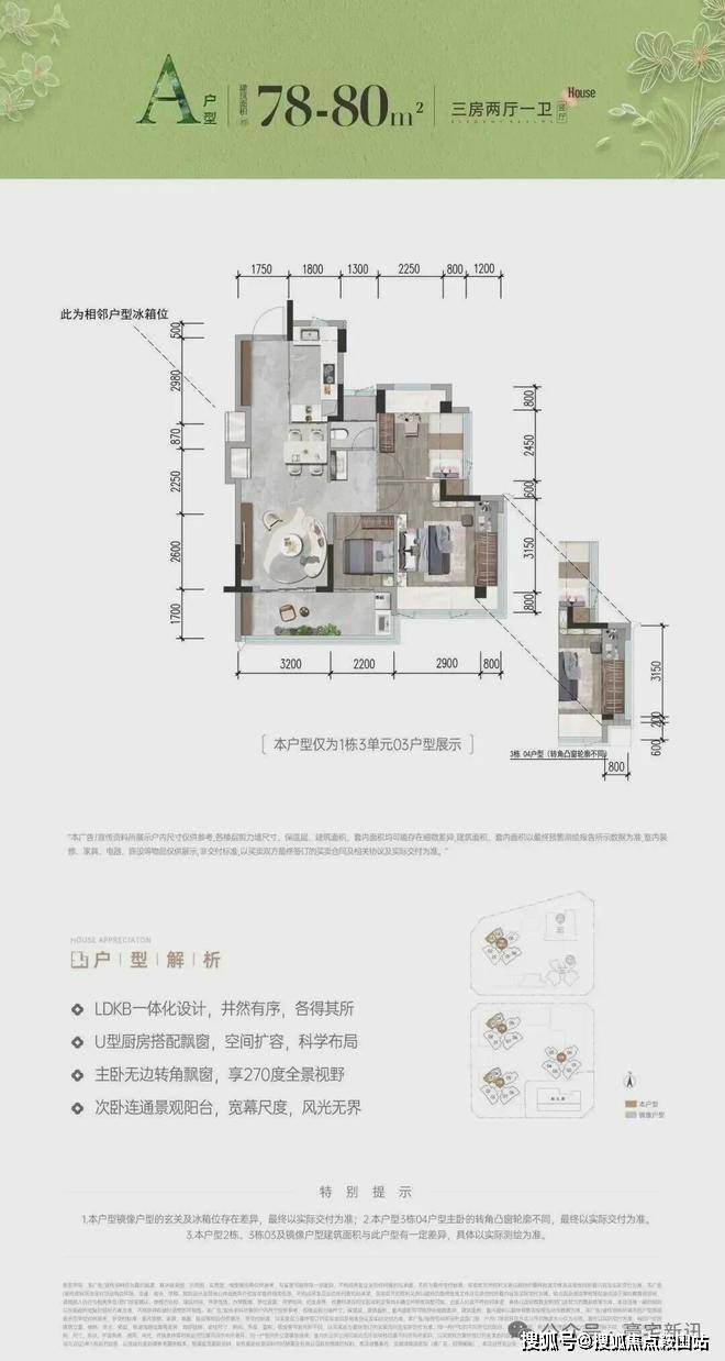 首次推首北地块1栋3单元,约80-92㎡ 3房,共195套,新规使用率高达96%-105%!
