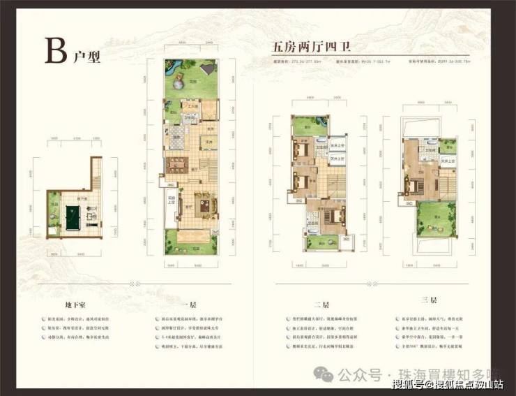 水系别墅,匠心打造现代建筑风格标杆精品项目。住宅规划充分考虑地块坡度、活源水系、五指山等山水资源;住宅运用绿色围墙沿基地周边布置,利用活水系形成小区内三横两纵的亚热带原来水系景观隔断;户户后花园亲水平台等;另外水系运用活水系统,保持自然及清洁;园林多为珍贵树种、花卉,考虑到三乡的气候特点,设计中重视户型的朝向、通风、景观视线和日照的均好性问题。