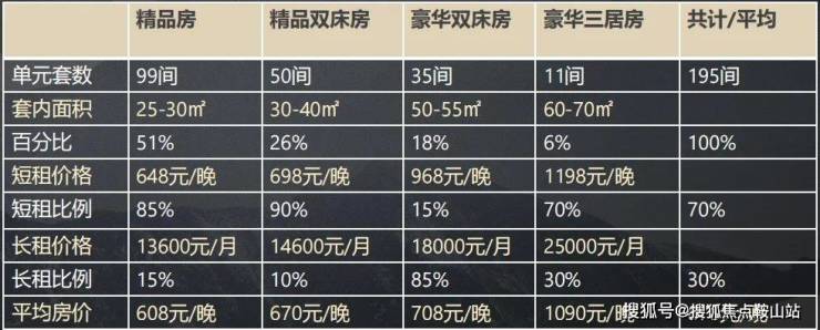综合各酒店集团预测数据,可取各酒店基于市场的预测价格,得出各房型投资回报率的极致精准数据。投资回报率ROI=年均收益÷预测均价(6.8w)÷建筑面积(回报率~5-8%左右)