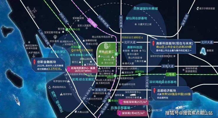占地面积:1.1万㎡建筑面积:11.8万㎡建筑面积:约42-146㎡总户数:300户层高:3.3-3.4米楼层:2-5层梯户比:5梯使用率:约70%均价:6.5万/㎡交房标准:精装交房时间:2024年底停车位:460个管理费:8.8元物业公司:宁骏物业(上市公司)国际金钥匙服务体系项目地址:深圳·南山中心·中山公园旁(地铁12号线中山公园站出口)一、湾区前沿择址深圳最优质商圈核心:最前沿+最宜居人居,高阶人士。五大总部基地环绕,前海深港合作区、高新科技园、后海、深圳湾及留仙洞总部群黄金原点,承接全市大量高净值人群的居住需求。