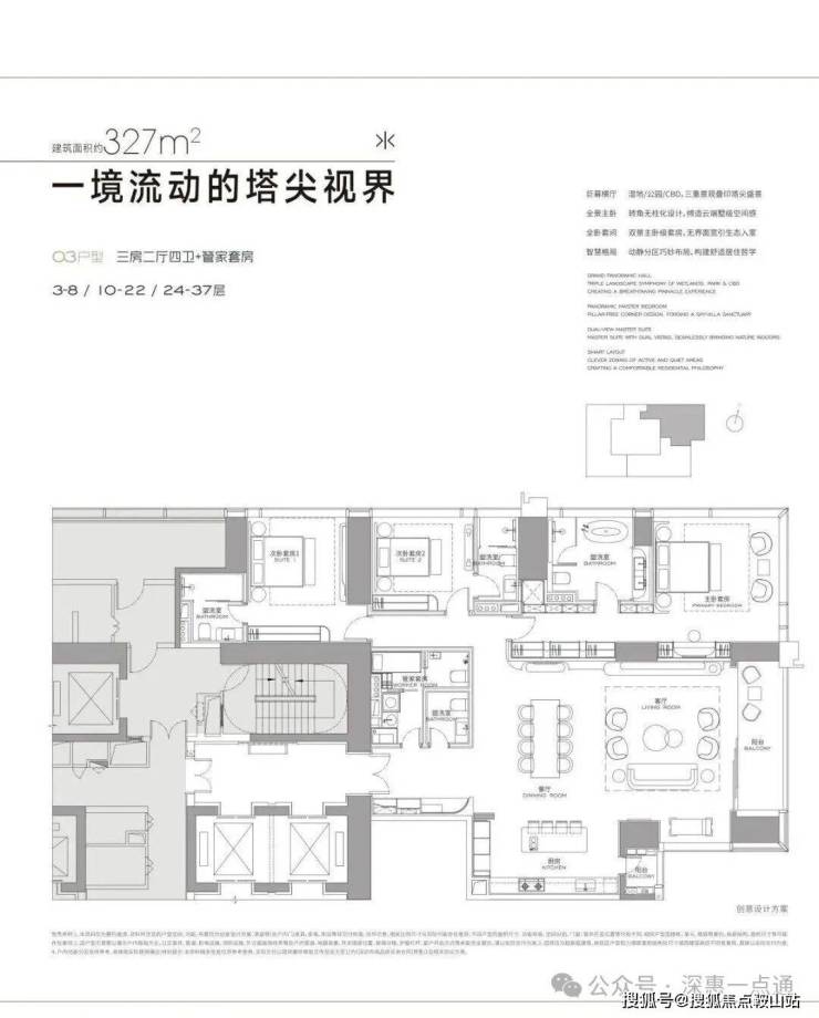 3栋低区3-37F,三面采光,客厅及主卧朝南看海,除了书房其它卧室全套房设计,该有的功能和尺度都给到了。缺点的话就是主卧整体尺度偏局促了一点。