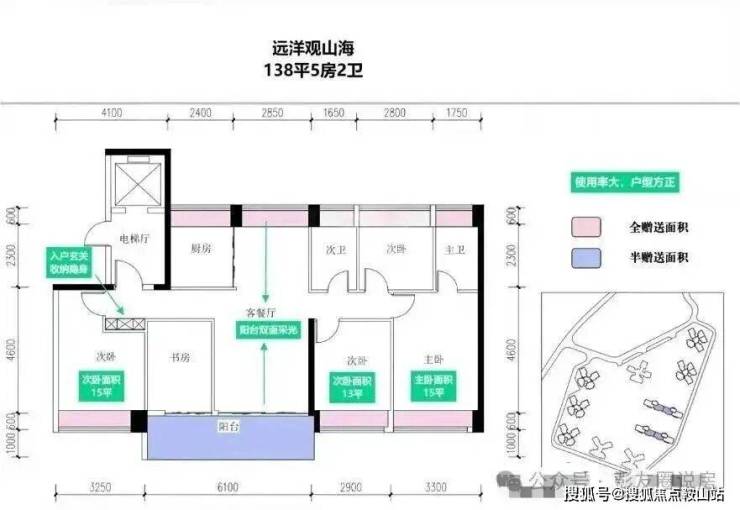 这次推出的138㎡为小区楼王3/4栋,17层2梯2户板楼,带独立电梯厅,可以做5房,赠送后得房率去到94-97%,预计单价10万/㎡左右,总价1300万左右。