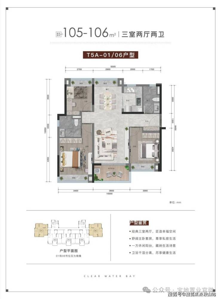 面积:105㎡、三房两厅两卫、两梯五户↓↓↓