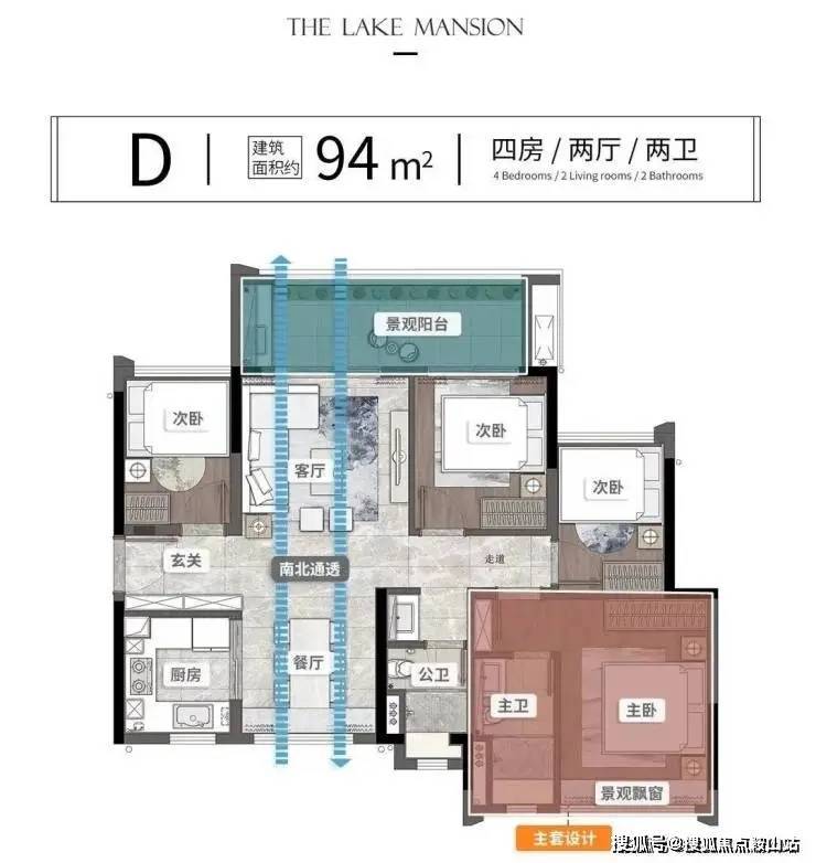 建面约94㎡的3+1房,南北通透的户型设计,双向望景,一线瞰中心园林泳池,部分角度还可望湖,一房一景,惬意十足。主卧同样有衣帽间的一方天地,通过飘窗又将窗外的繁华一览无遗。值得一提的是,主卫和公卫设计在同一侧,位置相邻,洁污分区的同时,尽可能地降低了使用噪音,十分人性化。该户型格局精巧,设计考究,是首改家庭的置业优选。