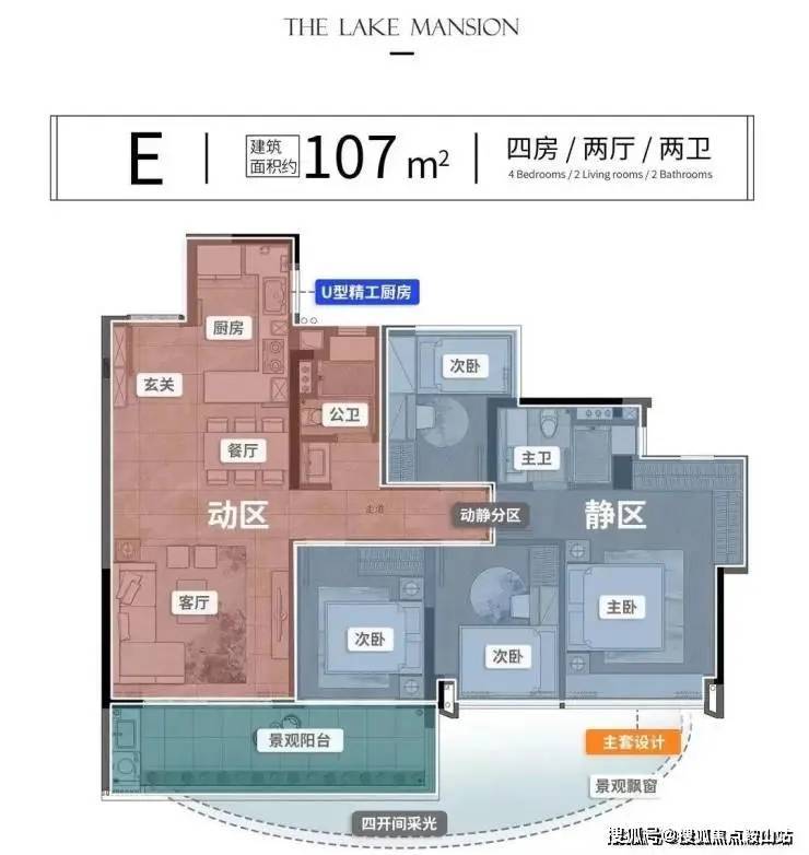 建面约107㎡的四房,亮点除了明朗的四开间朝南,还带约6.7米的超长南向巨幕阳台,让采光铺满各一寸房间。从客厅贯穿次卧,主卧配置超大转角衣帽间,配备全景式飘窗,更添尊贵感和私密性。更巧妙的是,U型厨房采用了折叠式的隔断,既可有效防止油烟外溢,又如西厨般开放,更添厨房与客餐厅的互动感。以刚刚好的舒适空间,实现一步到位,又能令居住体验直线翻倍,非常符合当代年轻人的品味。