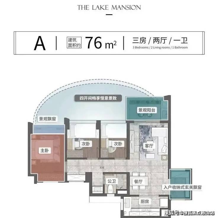 建面76平三房一卫,唯一楼栋的西北面,四开间的格局,宽敞通透,刚需上车户型