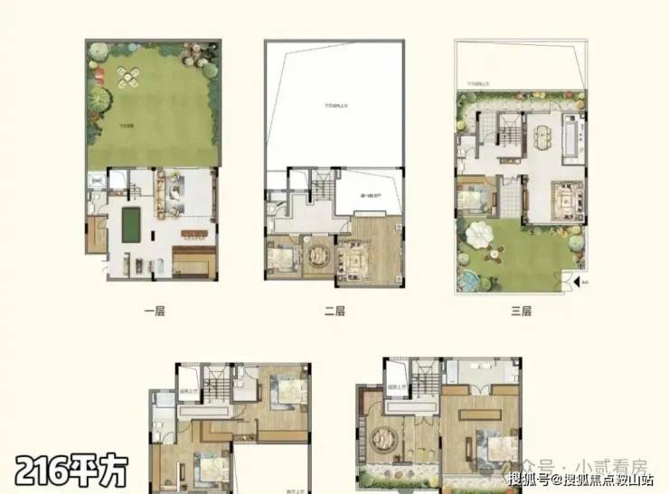 五矿万樾台共规划58套别墅,主要分为双拼、三联排、四联排、五联排、六联排别墅,面积为约165-215㎡。