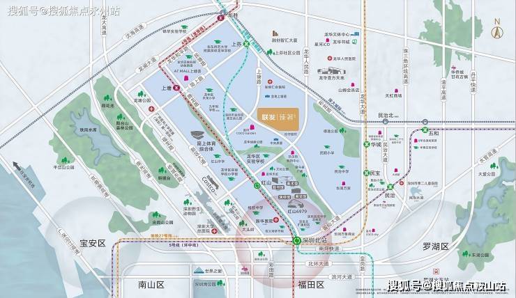 规划能级突出:毗邻深圳北站总部基地(规划约960万㎡商务体量),承接福田外溢需求,定位为“都市核心区”重要组成部分。