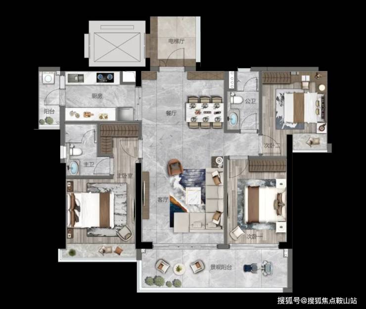 ◇大方厅/中西厨岛台设计/双主套设计奢阔空间尺度,全城罕见约8.3米南向观景阳台,270°一线广角山景大宅,赋予生活无限想象,定义城市进阶圈层。