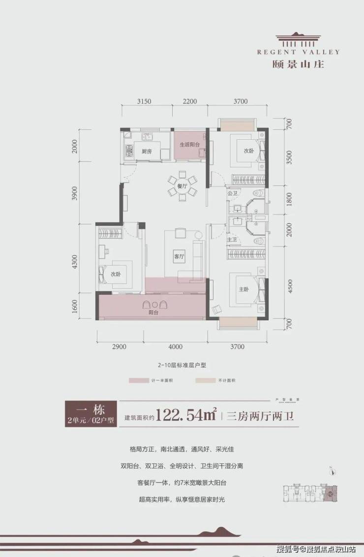 高赠送率、户户南北通透:小高层近95%实用率,公摊少、赠送多,高拓空间,性价比之王,户户南北通透,清风对流;4m客厅开间明朗,三面朝阳设计,延伸生活的幸福尺度